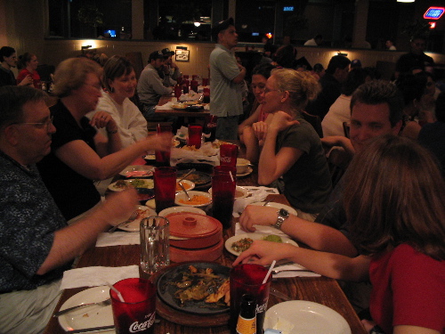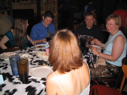The groom's family and Jay & Jenny Baker gather around a table at the rehearsal dinner. | Shower gifts
