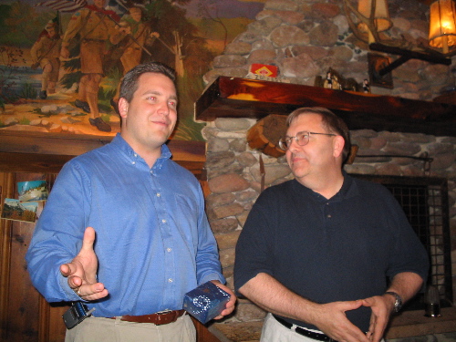 Andrew presents a gift to the best man, his father. | Rehearsal dinner