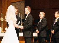 With 16 great friends and family memebers in attendance the front of the church is quite full. | Giving away the Bride