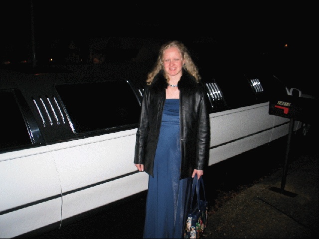 Erica stands by the limo we took to dinner, after buying her a new dress. |