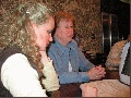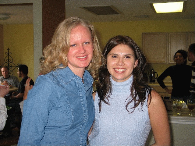 Erica and Mona pause from their conversation to humor the would-be photographer. | Loop 1 Engagement Party