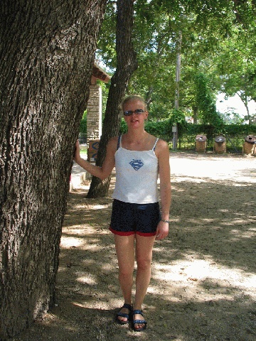 Erica poses in her SuperGirl T-shirt at the Labor Day Picnic 2003. | |