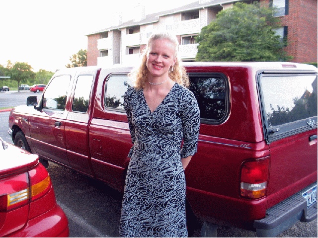 An absolutely radient Erica, now Andrew's girlfriend, stands by her truck to show off her beauty. |